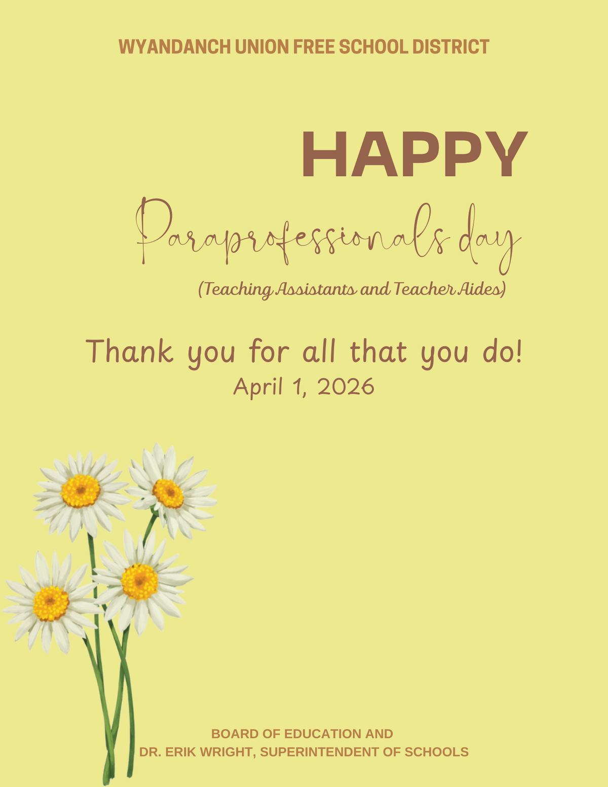 Happy Paraprofessionals Day (Teaching Assistants & Teacher Aides) -April 1, 2026