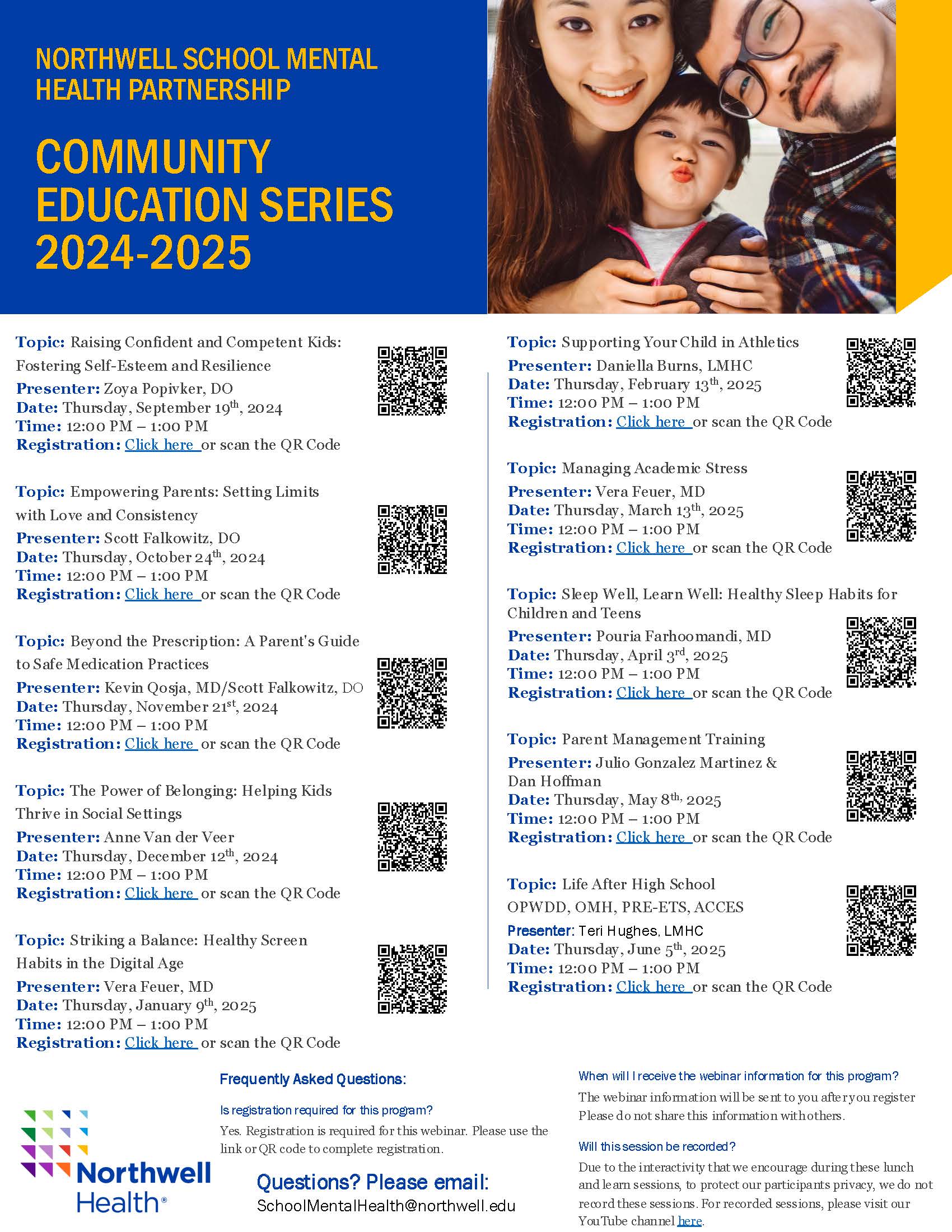 In partnership with Western Suffolk BOCES and Northwell, we are excited to share the attached community education events. To use the embedded links you must open the attached PDF document.